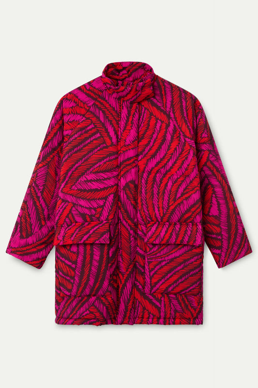 Abrigo acolchado con estampado pata de gallo negro y verde