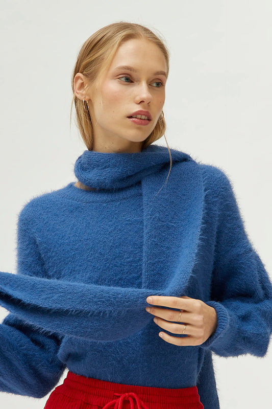 Bufanda de punto con textura azul