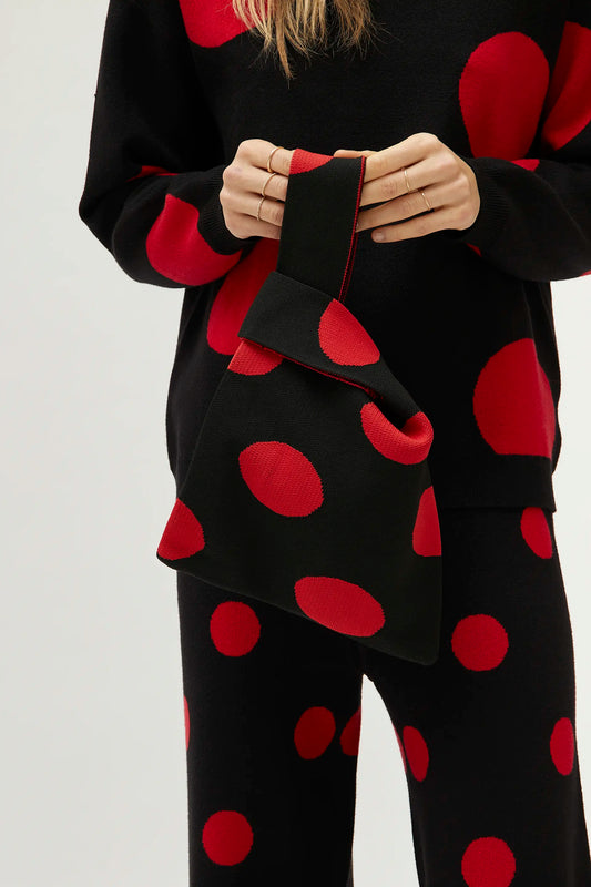 Bolso de mano estampado de lunares rojos