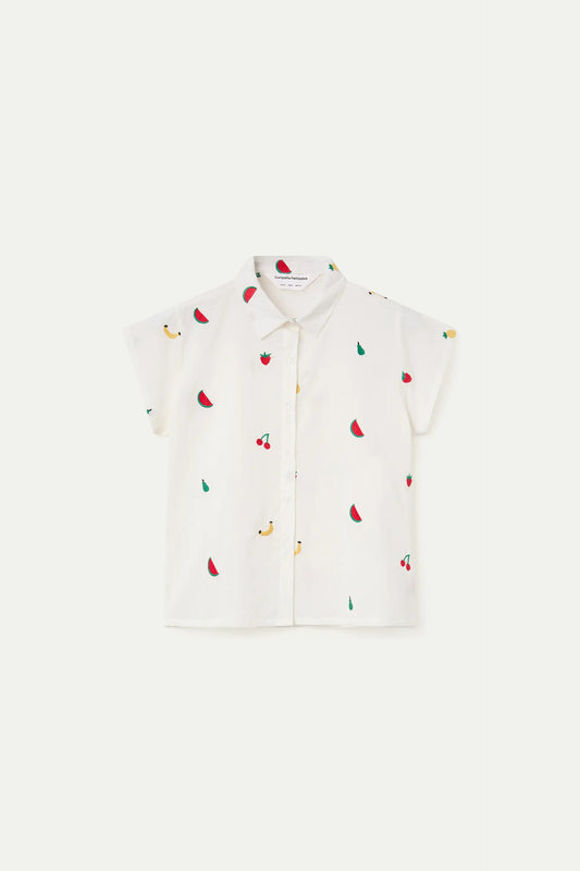 Camisa blanca 100% algodón con bordado de Ensalada de frutas