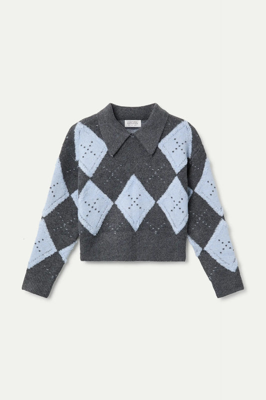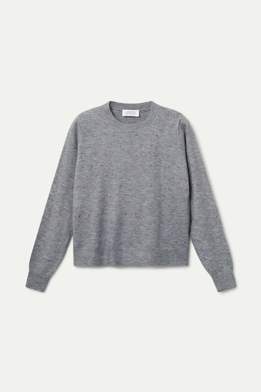 Jersey punto jacquard estampado topos mini navy blue y rosa
