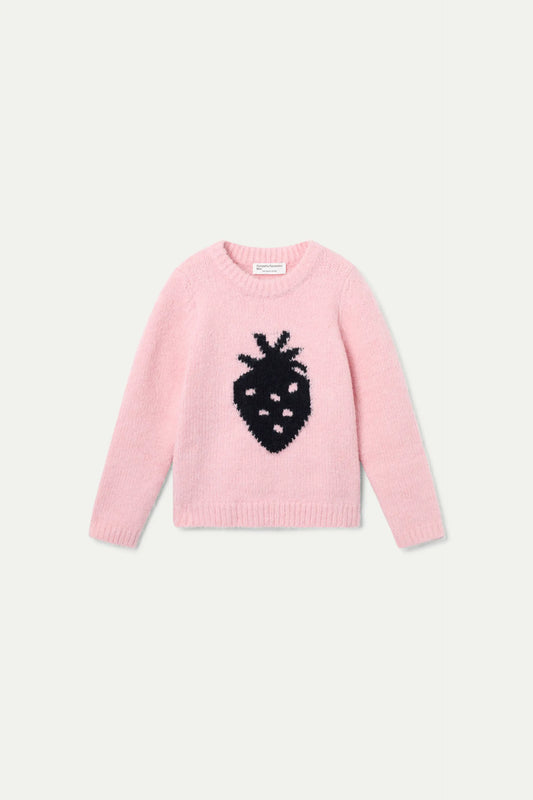 Jersey de niña de punto rosa con print de fresa