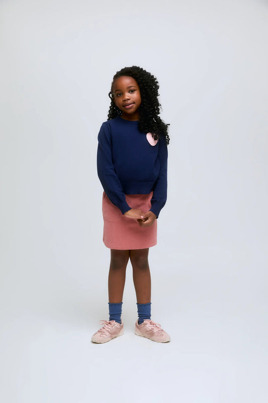 Jersey de niña de punto azul marino con bordado corazón rosa