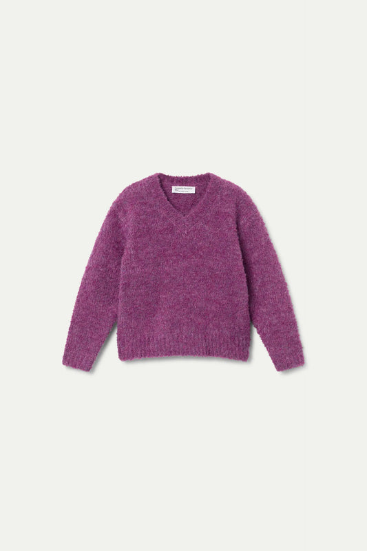 Jersey de niña de punto berenjena con textura