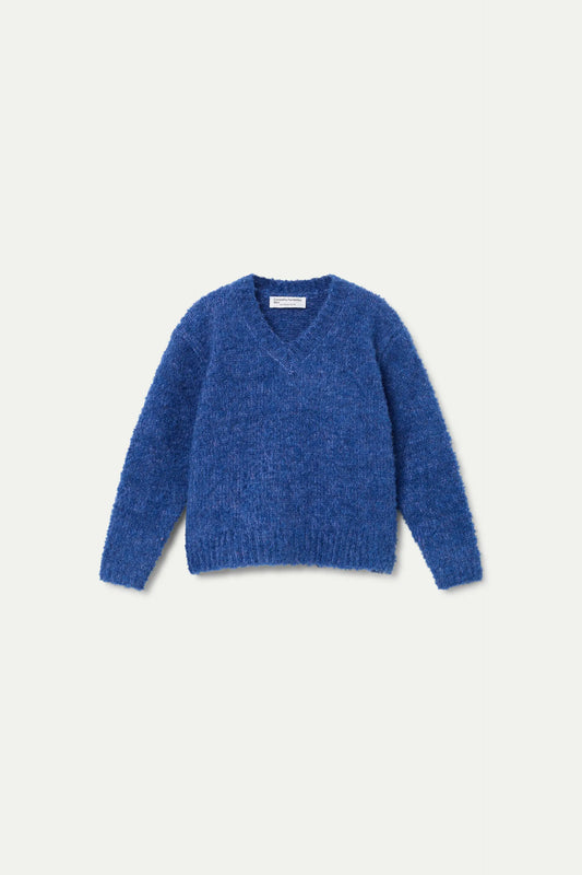 Jersey de niña en color azul con acabado jaspeado