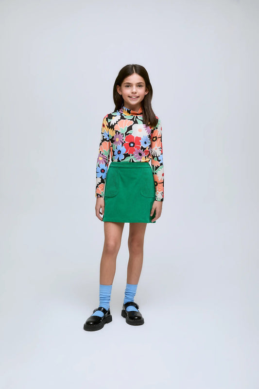 Jersey verde de niña de manga larga con cuello alto