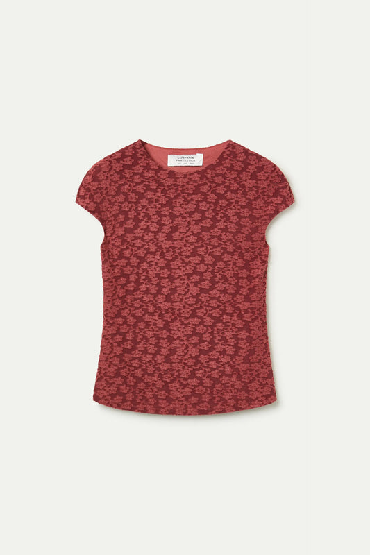 Camiseta manga corta con encaje floral marrón