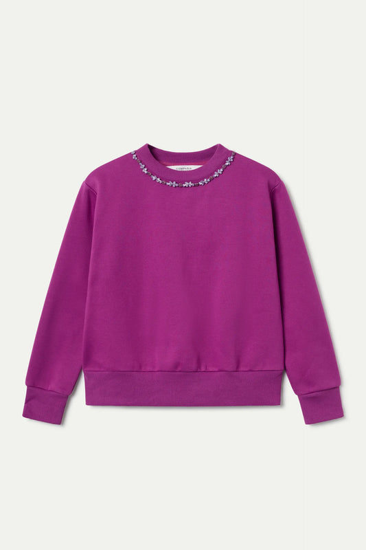 Sudadera con cuello joya magenta