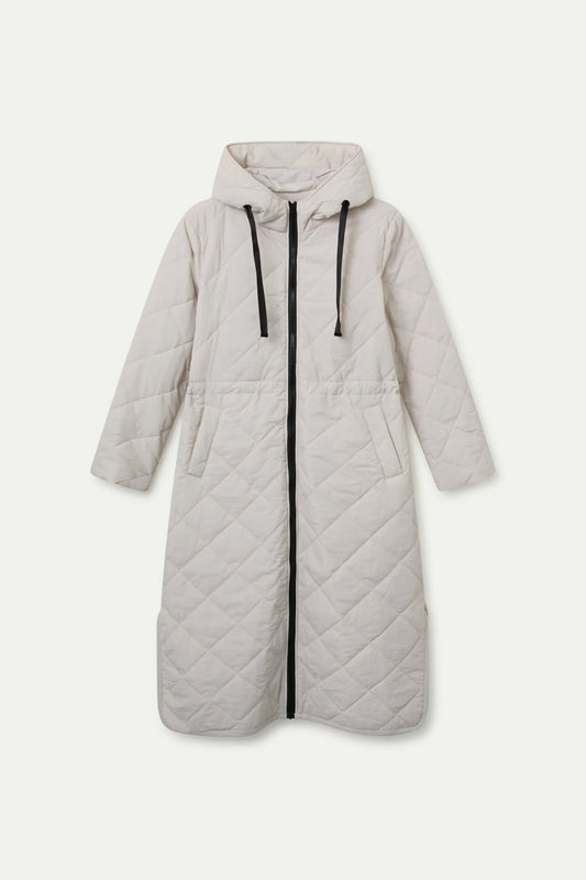 Abrigo acolchado largo con capucha blanco