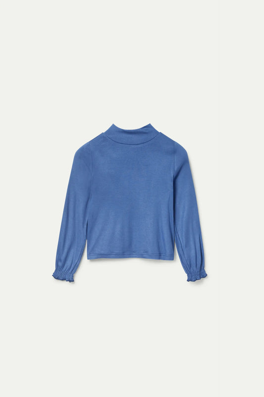 Top de niña cuello alto azul