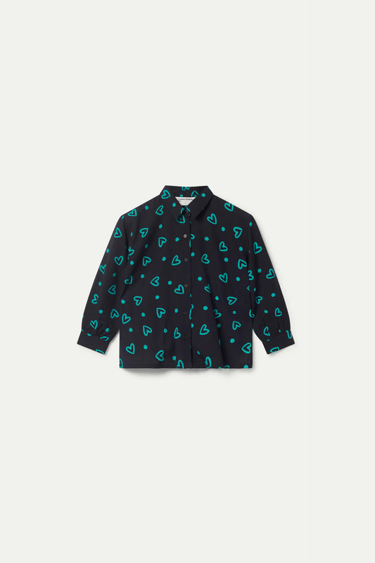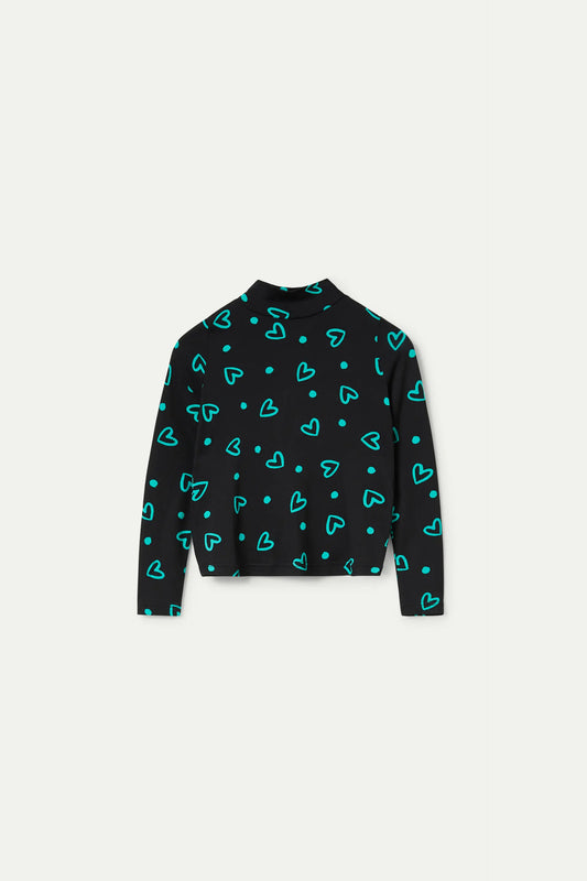 Camisa de niña estampado de corazones verdes