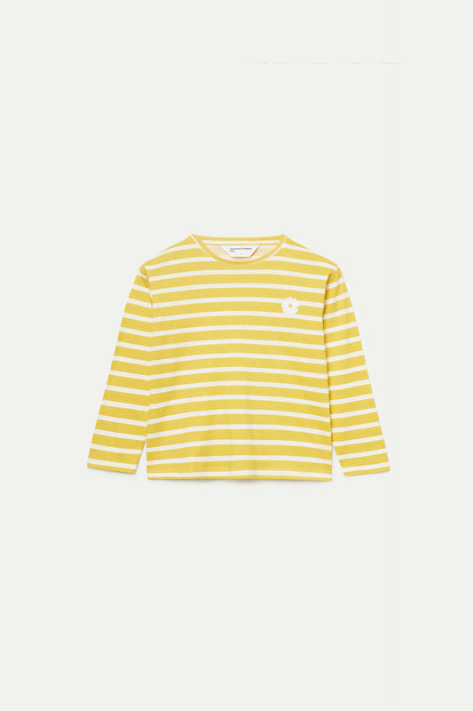 Camiseta de niña rayas parche de flor amarilla