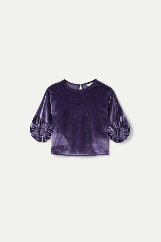 Top de niña de terciopelo manga abullonada morado