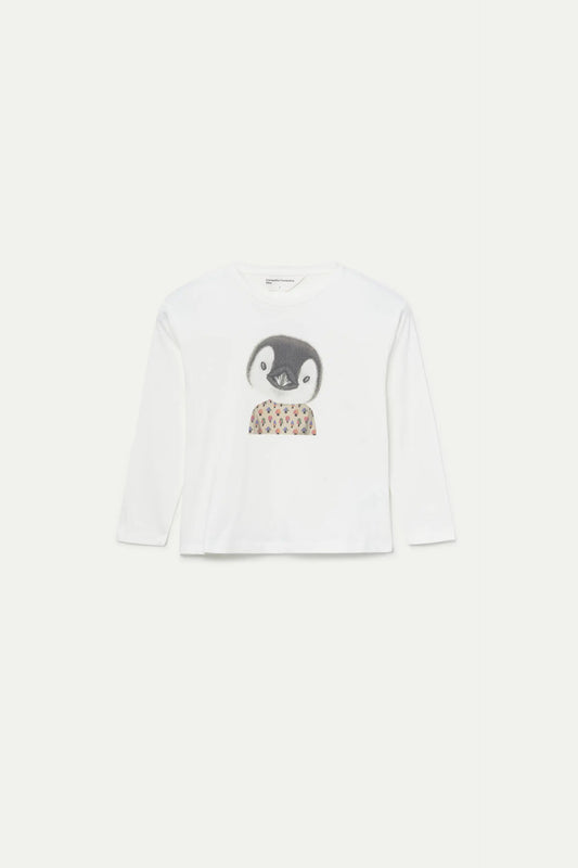 Camiseta de niña con print de pingüino blanca