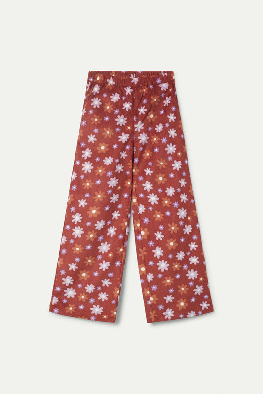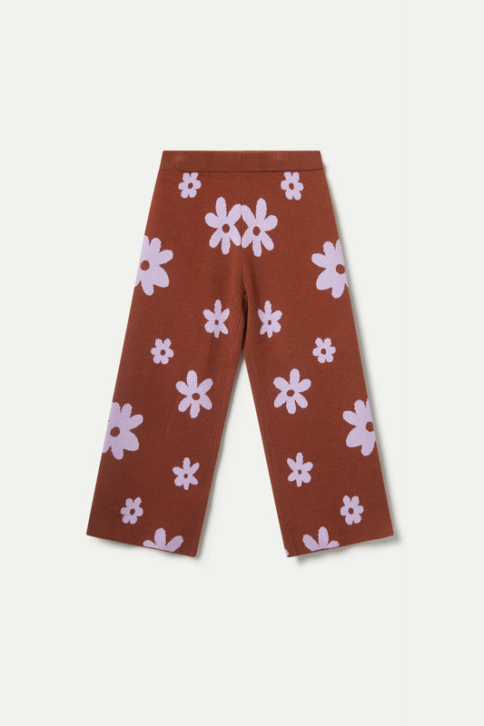 Pantalón de niña punto estampado flores marrón