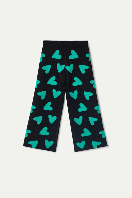 Pantalón de niña punto estampado de corazones negro