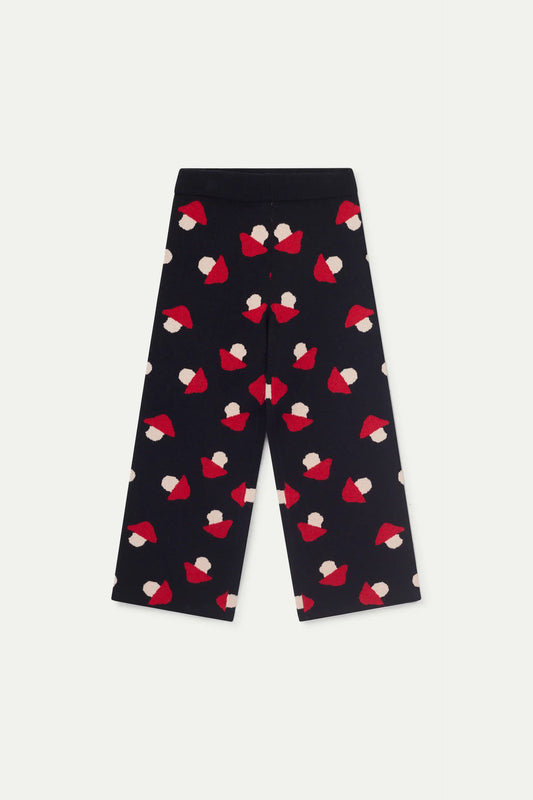 Pantalón de niña de punto jacquard estampado de setas negro