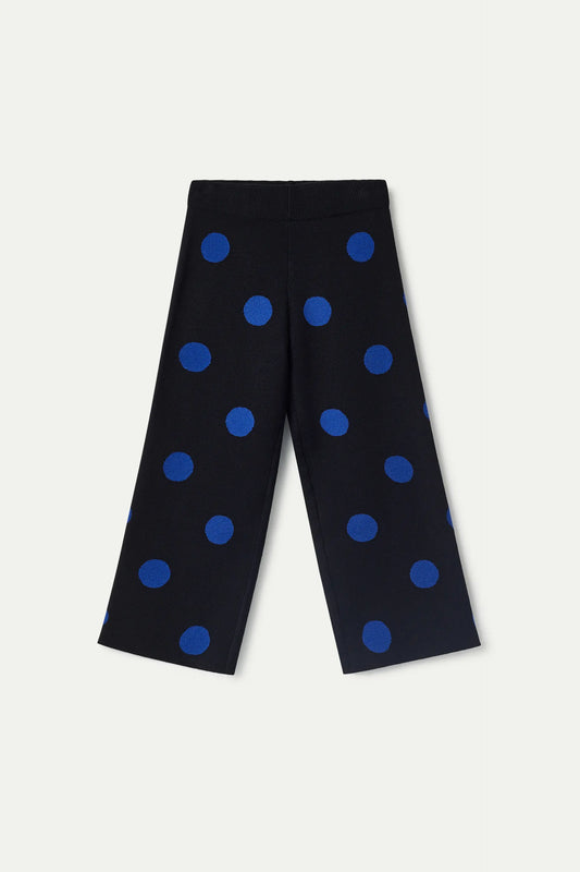 Pantalón de niña de punto jacquard estampado de lunares azules