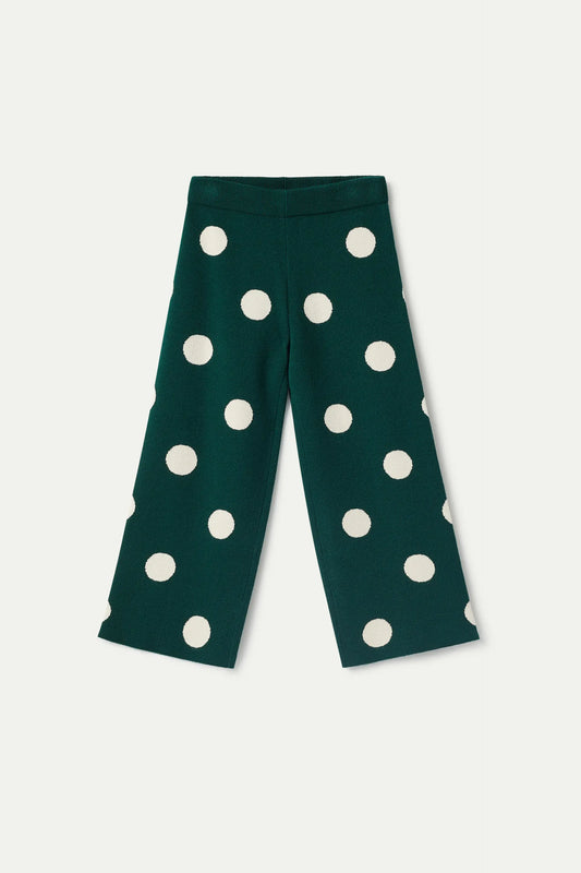 Pantalón de niña de punto jacquard estampado de lunares blancos