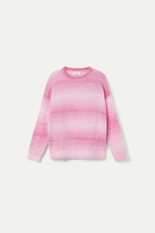 Jersey punto jacquard estampado topos mini navy blue y rosa