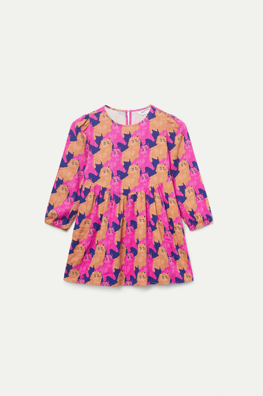 Vestido corto de niña con estampado de gatos