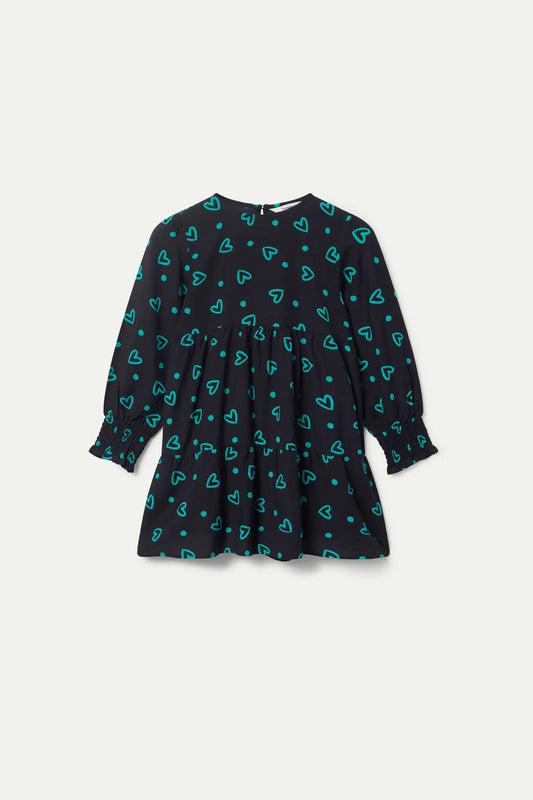 Vestido corto de niña de manga larga con estampado de corazones Porpourri