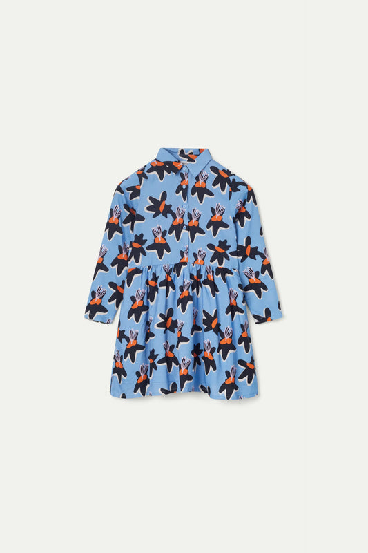 Vestido corto de niña estampado floral Calatea azul