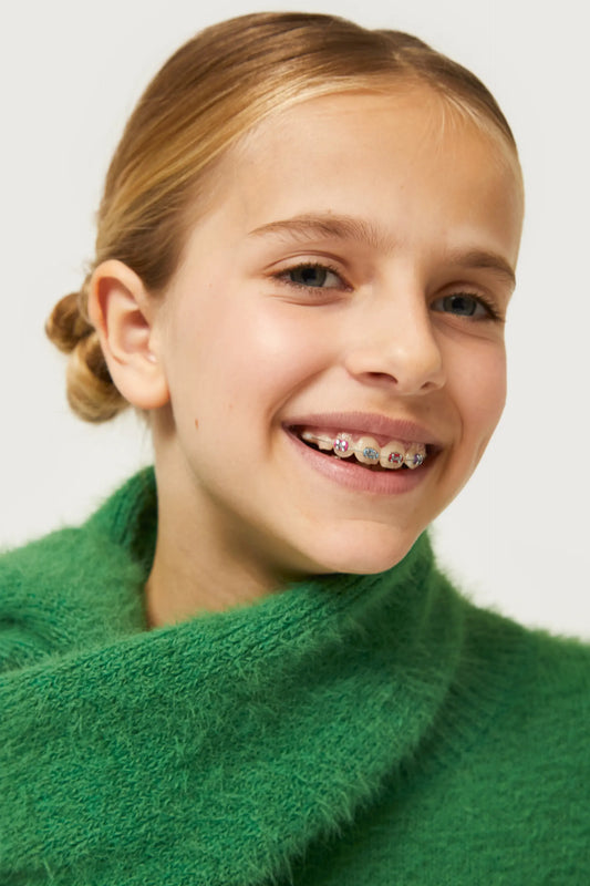 Jersey de niña de punto con textura verde