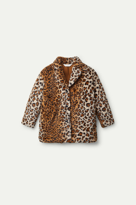 Abrigo de pelo sintético de niña con estampado Animal Print