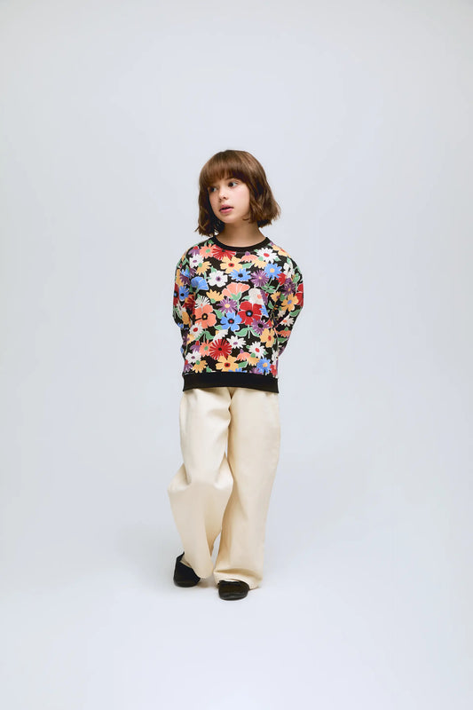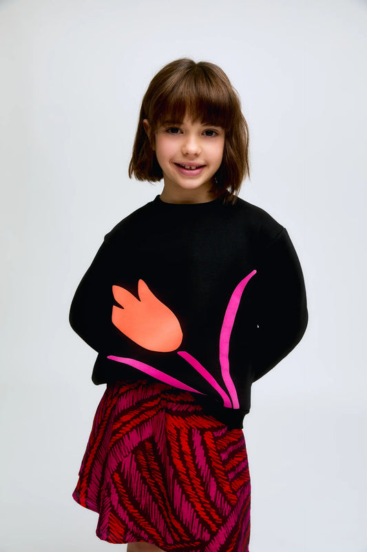 Sudadera en color negro con estampado gráfico de flor en contraste.