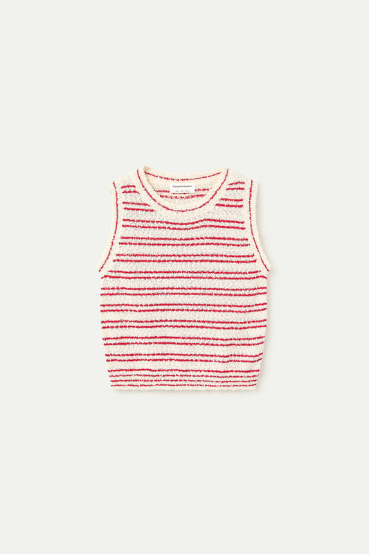 Top punto texturizado con rayas rojas