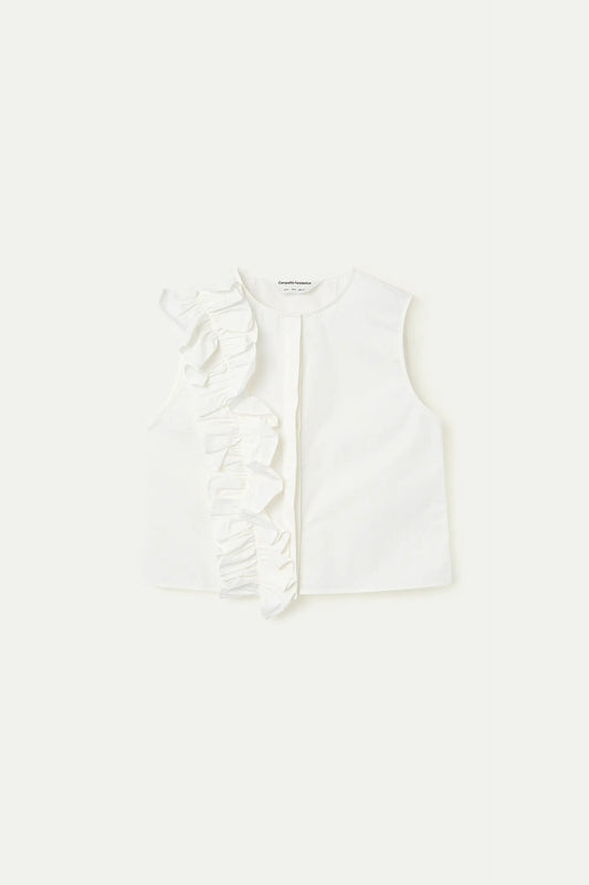 Top 100% algodón blanco con volante