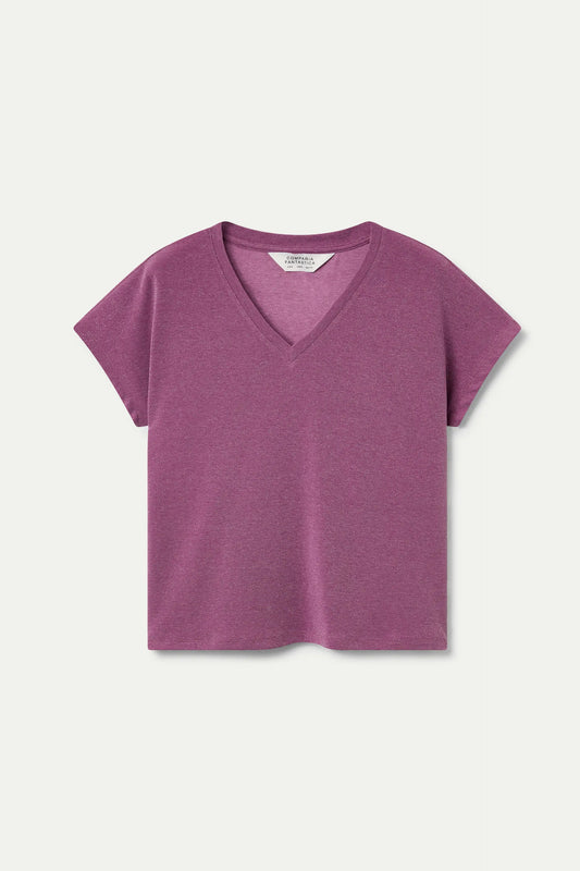 Camiseta cuello pico lila