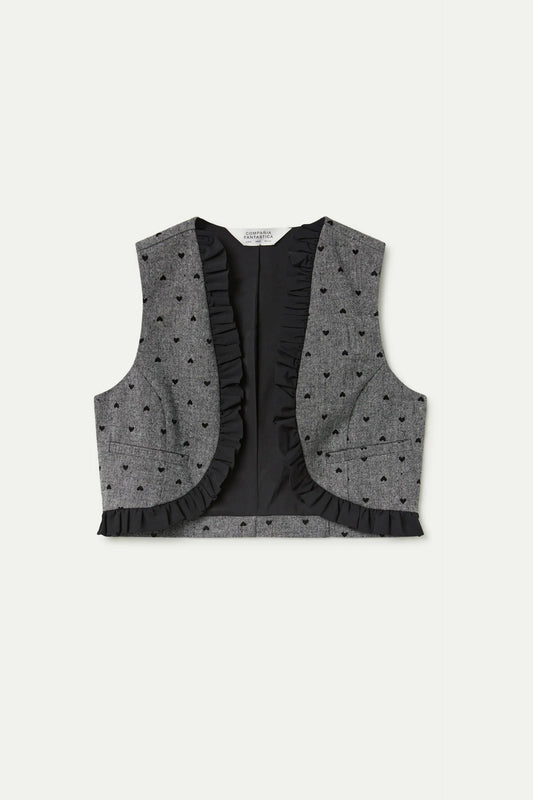 Chaleco tweed con estampado de corazones negro