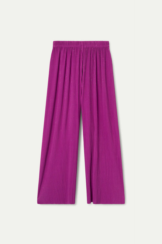 Pantalón crepé plisado con lúrex magenta