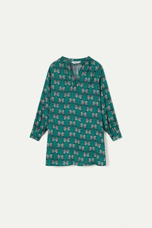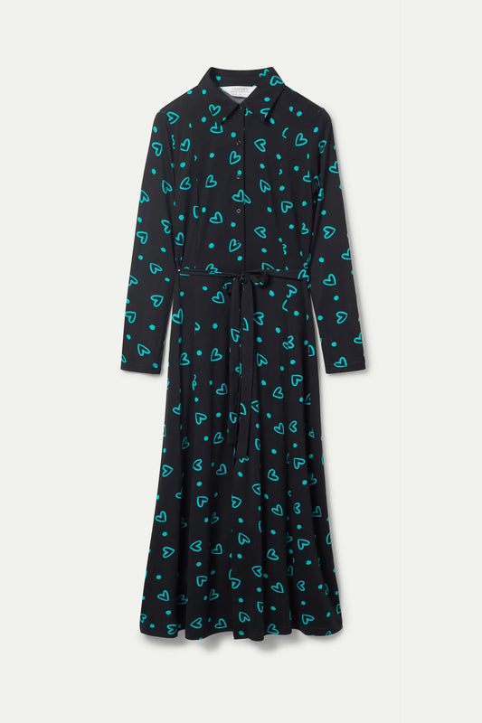 Long shirt dress with green heart print