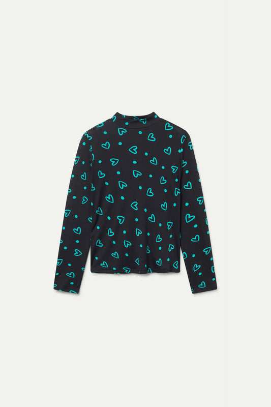 Green heart print fitted top