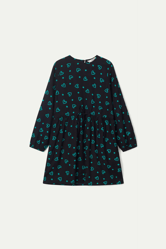 Short girl's dress printed with green hearts