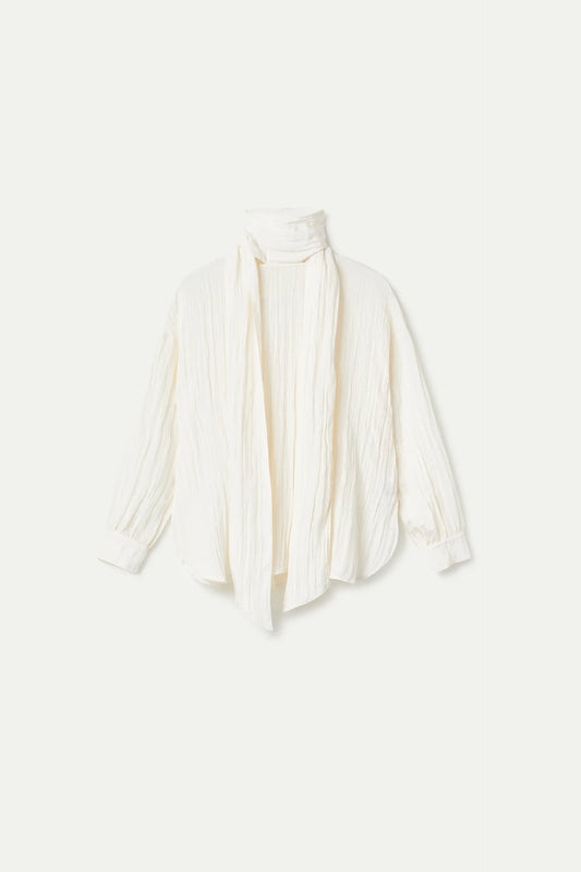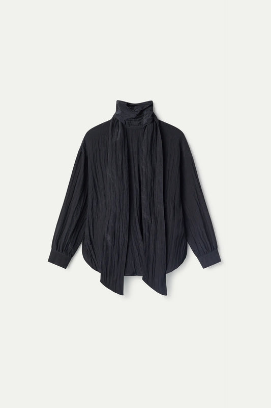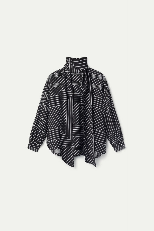 Top with black striped printed scarf