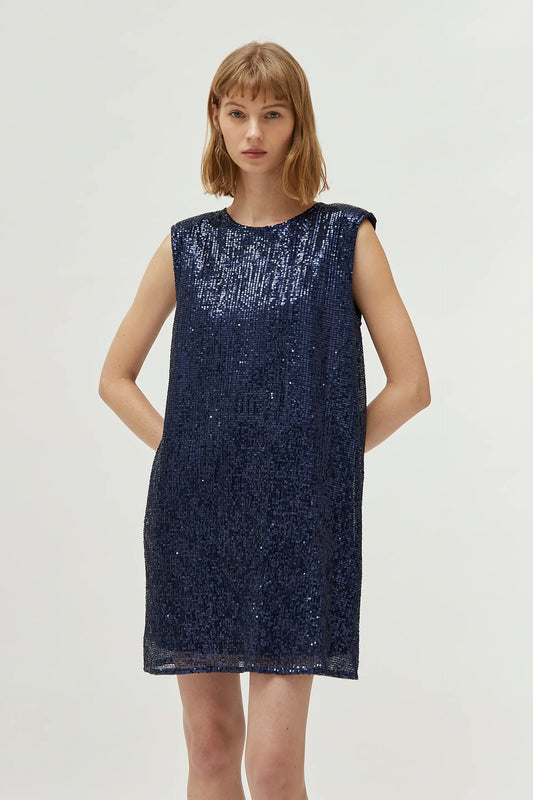 Long blue chenille dress