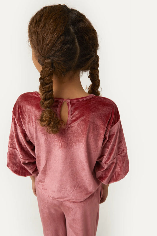 Short pink velvet girl's dress