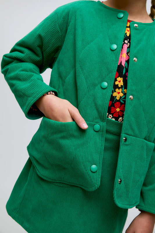 Green corduroy girl's jacket with pockets