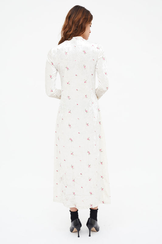 Long velvet dress with floral embroidery