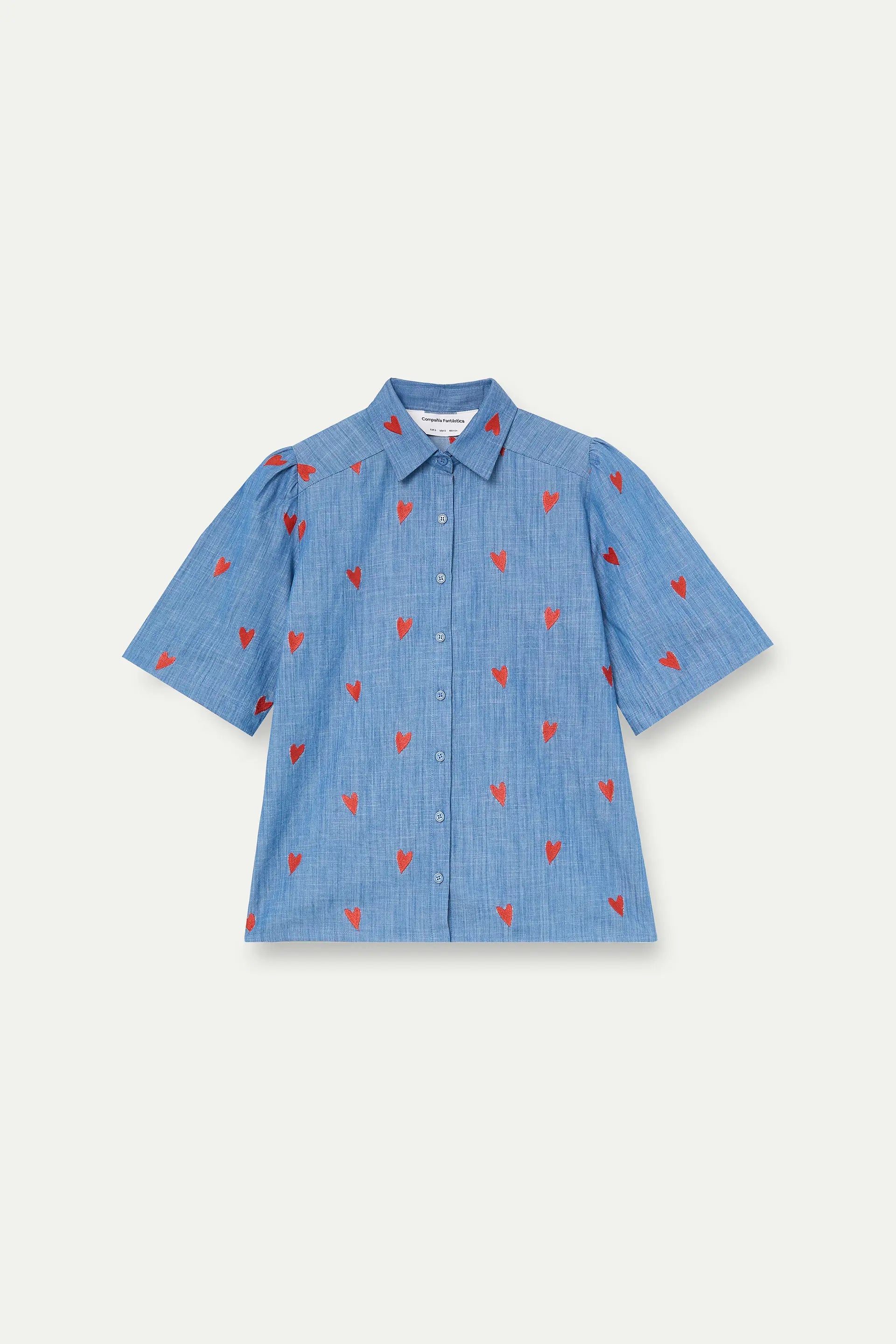 100% cotton chambray shirt with embroidered hearts