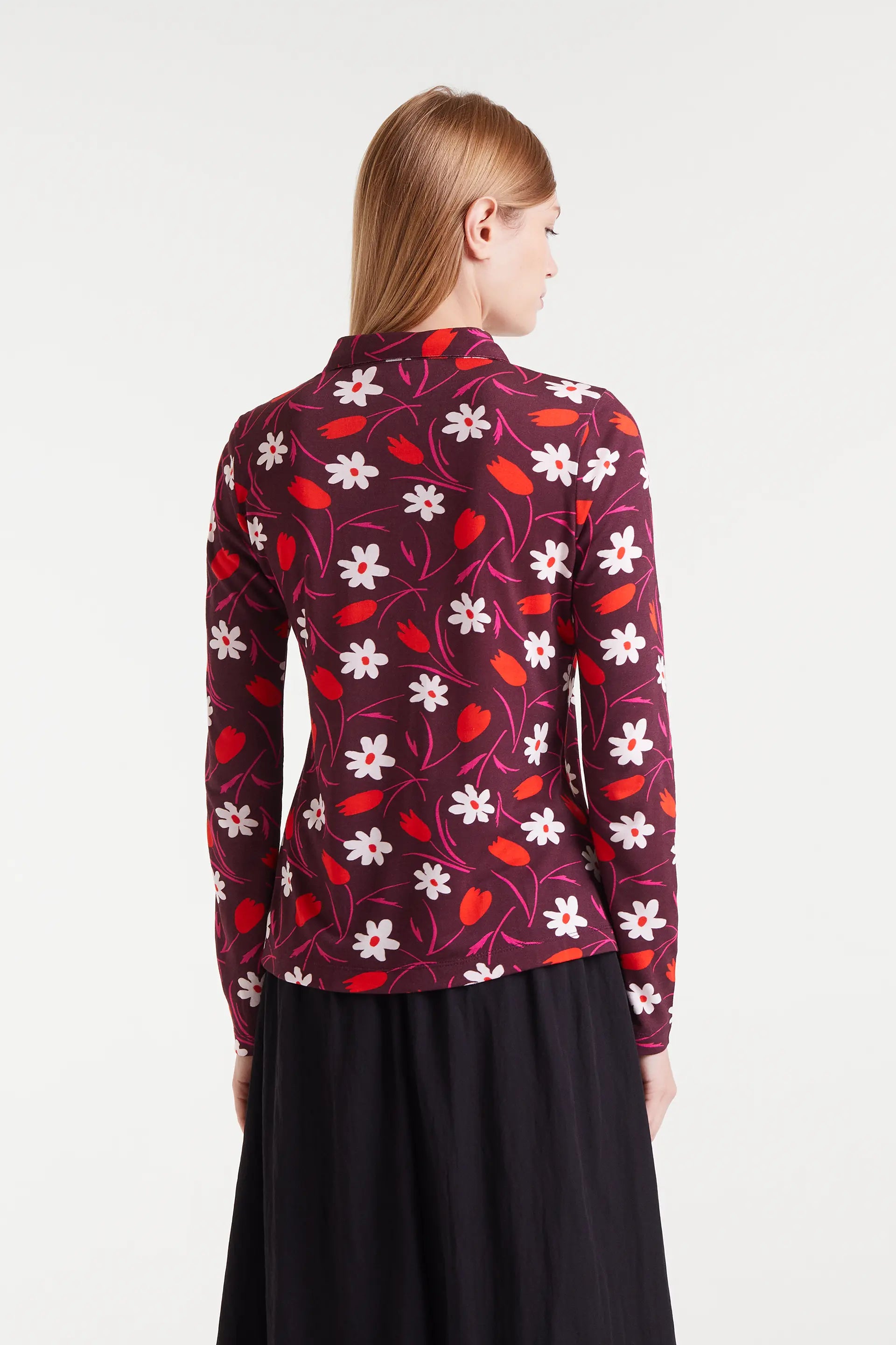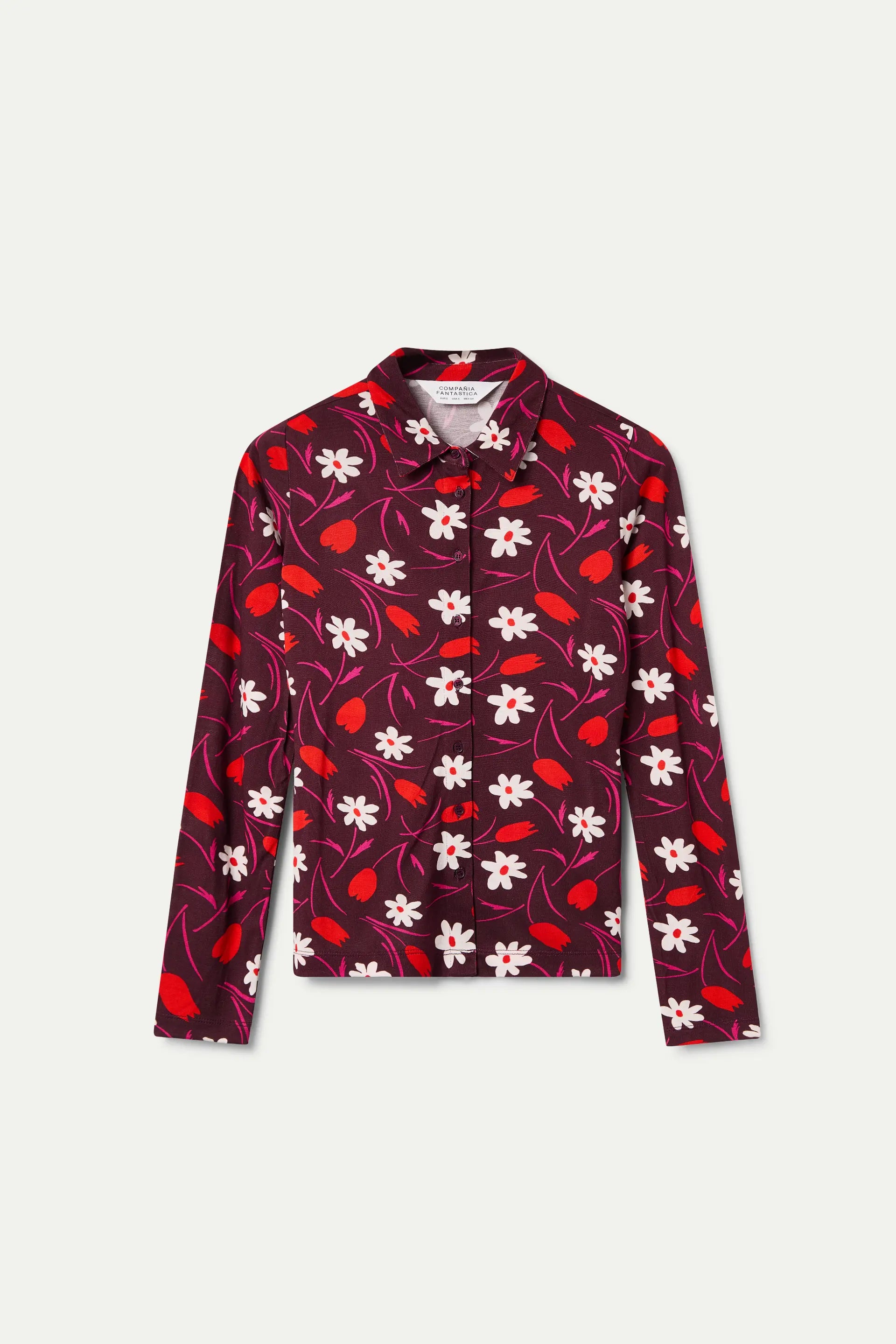 Tulip print shirt. With a lapel collar and long sleeves. Button-front closure. The model is 179 cm tall and is wearing a size S.