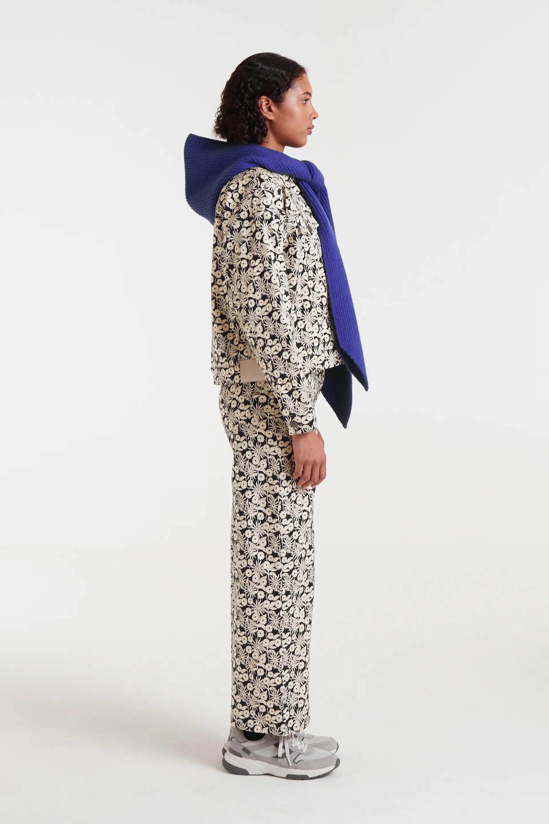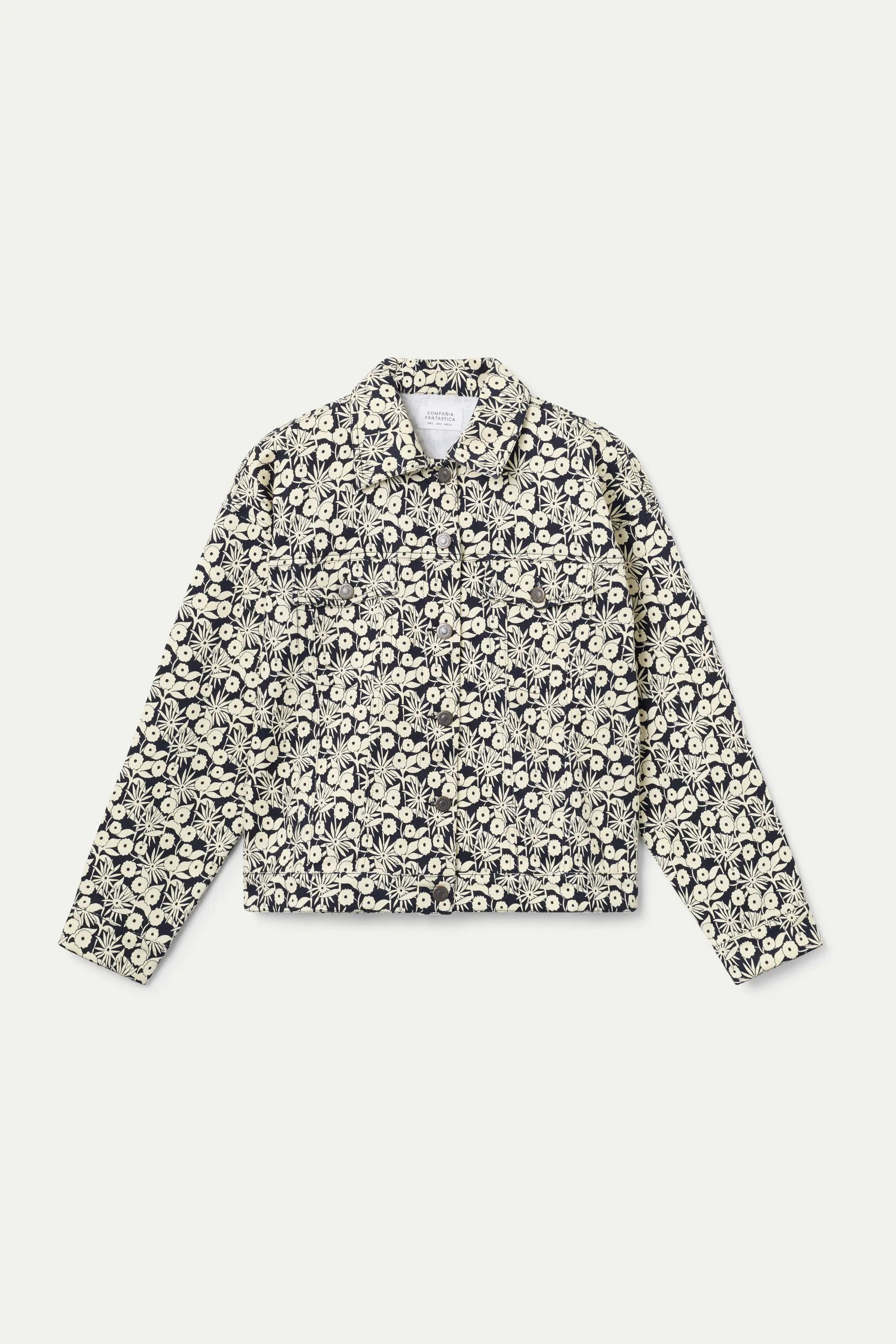 Chaqueta de tejido denim elástico con estampado Tofu. Cuello con solapa y manga larga. Hombro ligeramente caído. Cierre frontal con botones. Bolsillos frontales con solapa. La modelo mide 177 cm y lleva la talla S.
