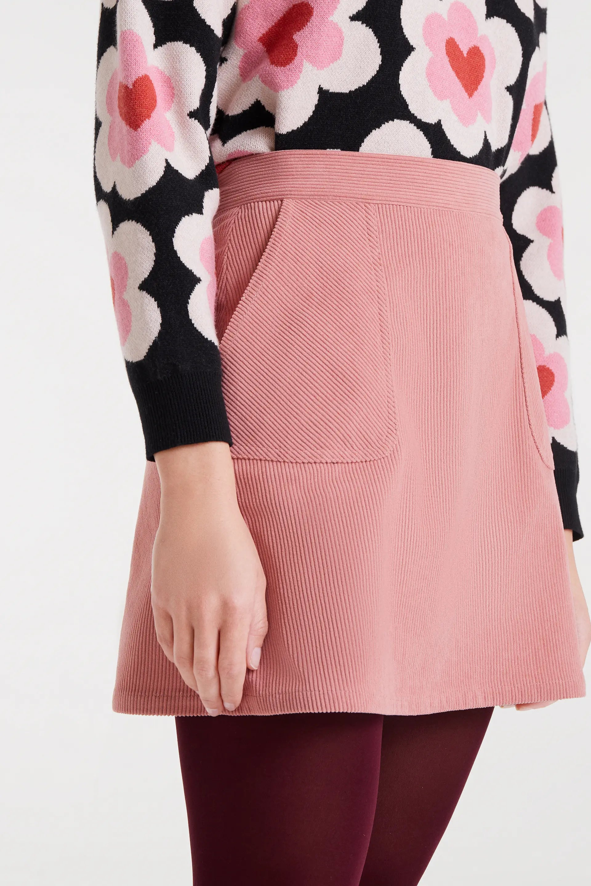Short pink corduroy skirt