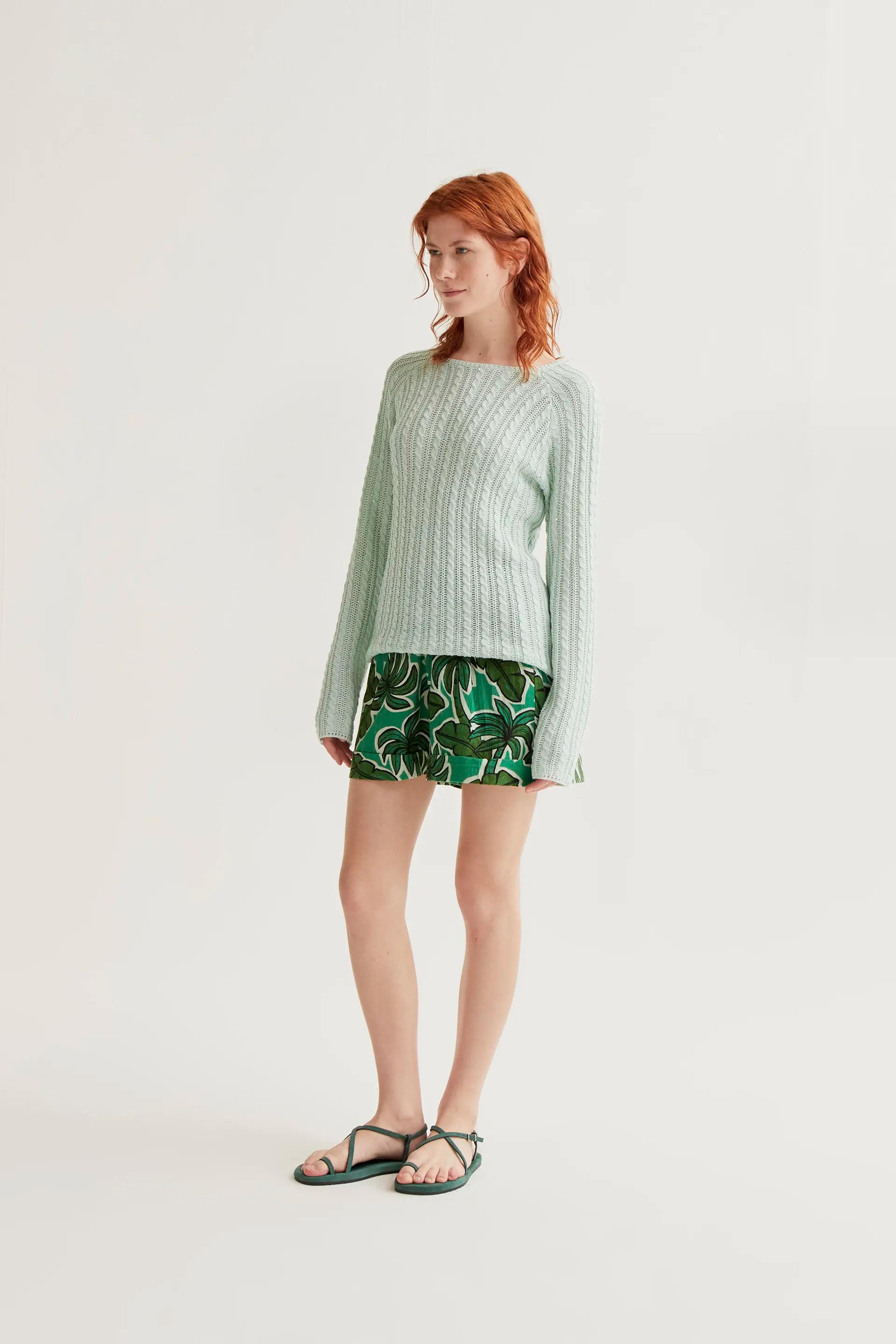 green chain stitch sweater