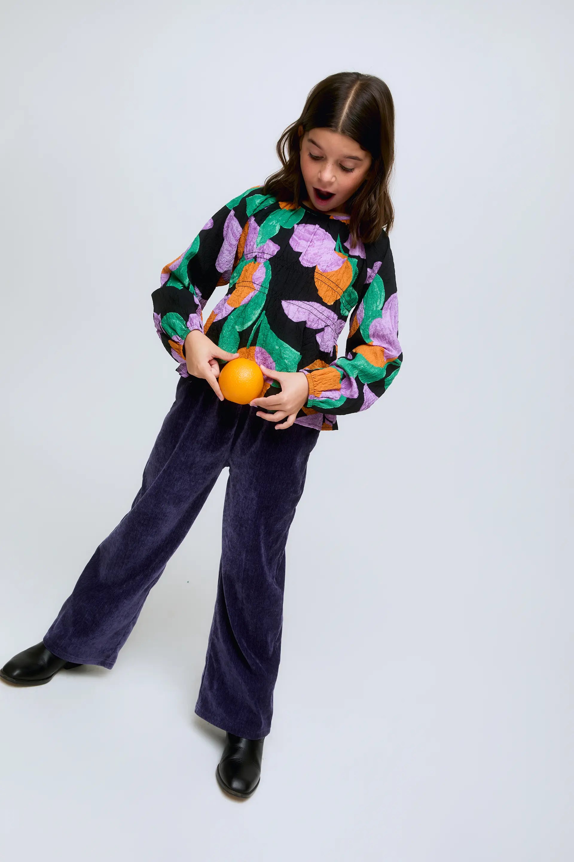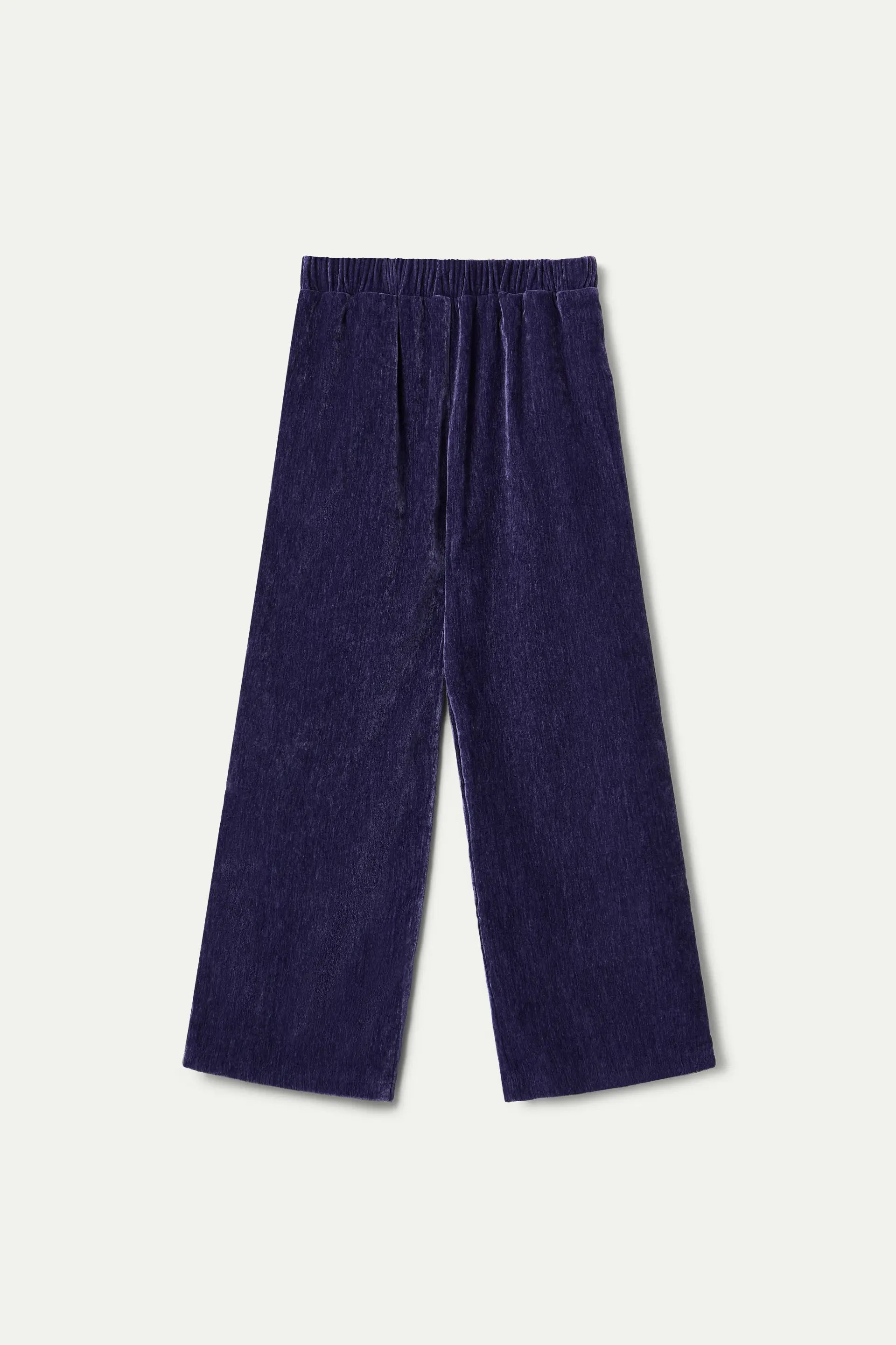 Wide-leg navy blue girls' pants with an elastic waistband and side pockets. They're velvety soft, warm, and comfortable.