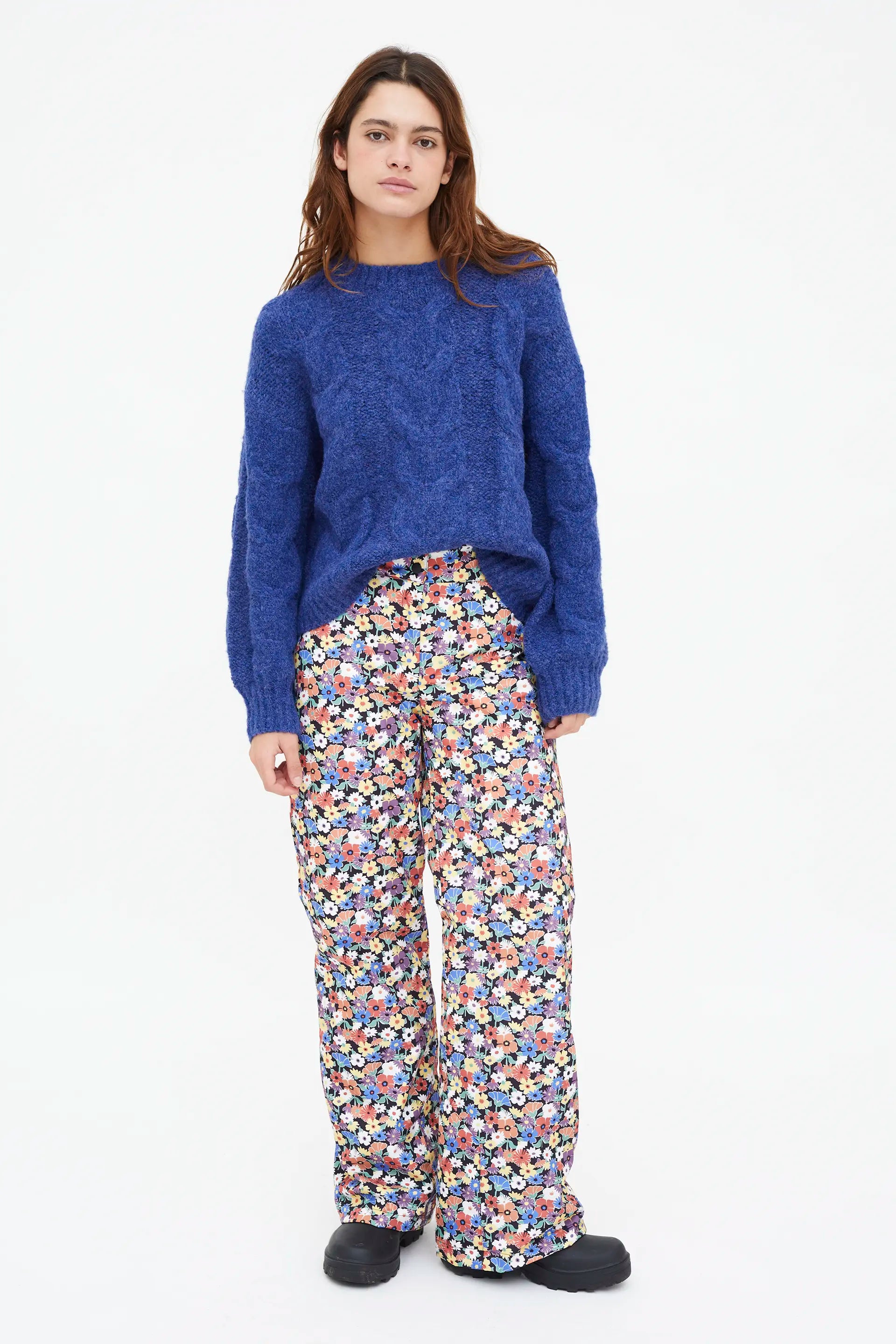 Hampton Small print trousers. Adjustable elastic waistband. Straight leg. Lined. Model is 174 cm tall and is wearing size S.